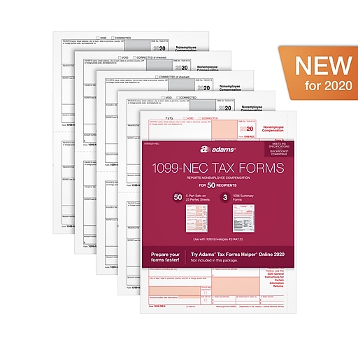 Adams 2020 1099 Nec Tax Forms 5 Part 50 Pack Stax520 Nec Staples